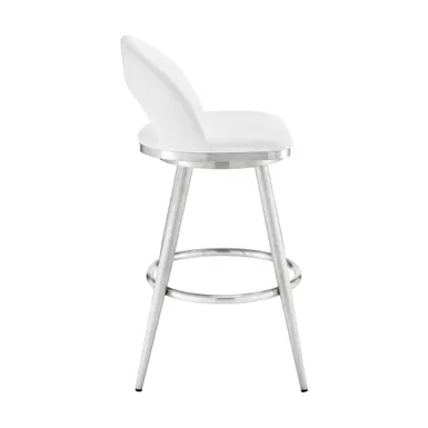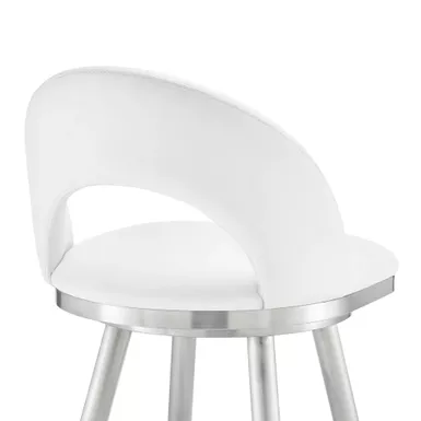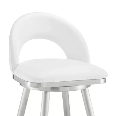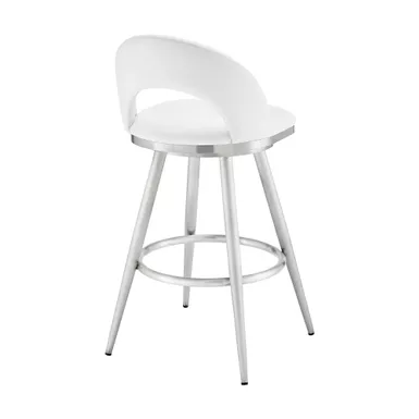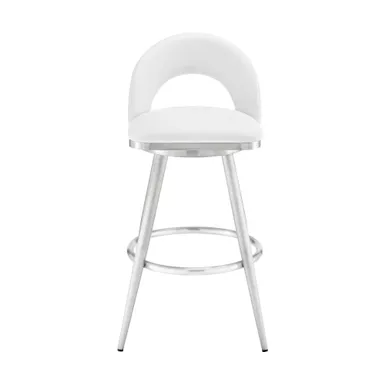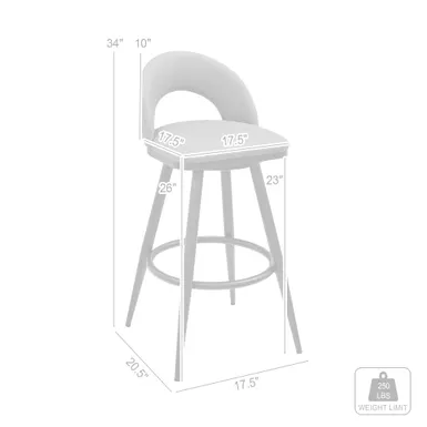Embrace the refined style of the Lottech swivel faux leather bar stool from Armen Living. This kitchen barstool is available with a metal 4 leg base and faux leather upholstery. Faux leather does not crack easily and is stain resistant, does not fade easily and is also UV resistant. Counter or bar height stools that feature a swivel mechanism tend to be much more convenient for everyday use or when entertaining. The wonderful full 360-degree swivel function allows for maximum mobility. The smooth glide swivel function allows you to change directions with ease, making this your new favorite seat in your home. This modern bar stool has an open back that creates a breathable seat, allowing you to sit comfortably for extended periods.