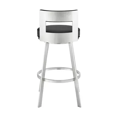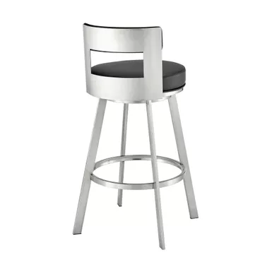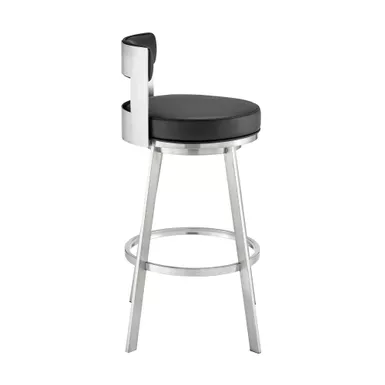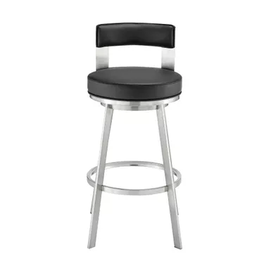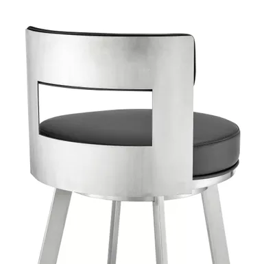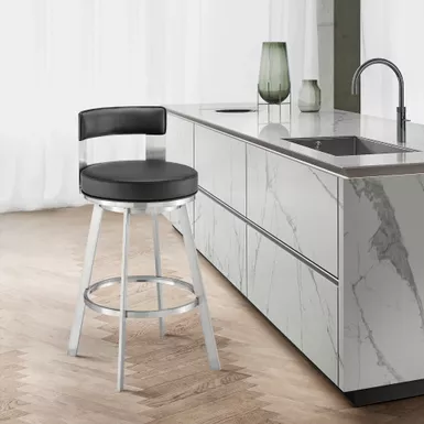 Modernize your home with the Lynof swivel bar stool from Armen Living. The Lynof is available with a metal 4-leg base and features durable faux leather upholstery. Faux leather does not crack easily and is stain resistant, does not fade easily and is also UV resistant. Counter or bar height stools that feature a swivel mechanism tend to be much more convenient for everyday use or when entertaining. The wonderful full 360-degree swivel function allows for maximum mobility. The smooth glide swivel function allows you to change directions with ease, making this your new favorite seat in your home. This modern bar stool has an open back that creates a breathable seat, allowing you to sit comfortably for extended periods. Featuring a chic and streamlined profile, the modern counter stool features a subtly curved back. Complemented with a roomy round cushioned seat, our thoughtfully designed counter stool supports you in just the right places.