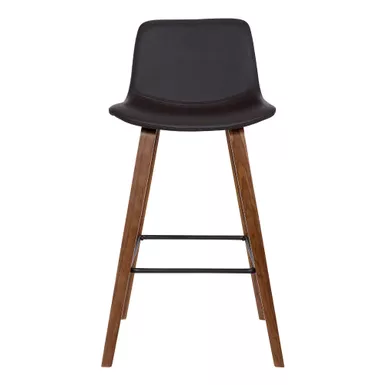 The Armen Living Maddie modern barstool is a wonderful choice for anyone interested in a practical, yet attractive piece of home bar or kitchen furniture. The Maddie’s appeal lies in its stylized Walnut wood finished legs which come with a convenient Black Powder Coat finished metal footrest and rubber floor protectors. The Maddie’s subtly curved, low back designed seat offers exceptional lumbar support and makes a bold statement with its sleek Brown Faux Leather upholstery. An exceptionally beautiful choice, the Maddie is ideal for kitchen furnishing, but is practical enough to serve as additional seating in just about any room of the house.