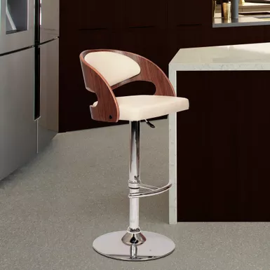 The Armen Living Malibu contemporary adjustable barstool is an ideal addition to the modern kitchen or bar. This beautiful gas lift barstool features a swivel seat set upon a sleek chrome metal column. The column comes complete with a footrest for added comfort, while the seat and back are padded with faux leather upholstery and accented by a walnut veneer shell. This wonderful combination of materials endows the Malibu with beauty without detracting from the barstool’s exceptional degree of comfort. An excellent addition to the home, the sleek Malibu barstool is available in black and cream, as well as dark oak and walnut finish. We stand by the quality, the craftsmanship, and the integrity of our product by offering a 1-year warranty for all our products. We want our customers to enjoy our product and we will always be there to help with our top-notch customer service support. Product Dimensions: 19″W x 20″D x 35-44″H