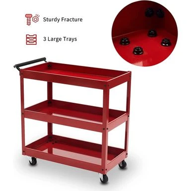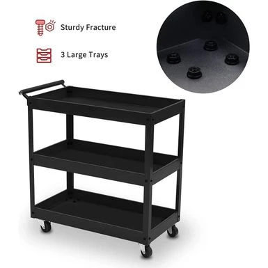 - Three-Tier Design: This heavy-duty tool cart includes three 28.1″x 15.1″ x 2.1″ tiers, large enough to store your commonly used items