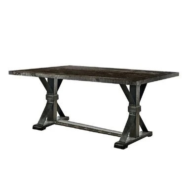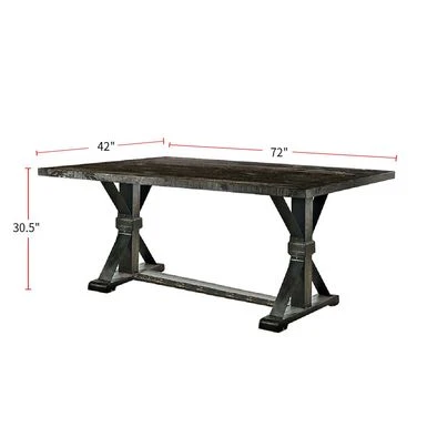 For a timeless appeal that will enhance the beauty of your dining room, look no further than this rustic style-inspired dining table. This exquisite dining set will be the talk of your next home-cooked meal, party, or small gathering with friends. Featuring a wood table top, pedestal base, and metal accents, this table has a timeless look you will enjoy for years to come.
