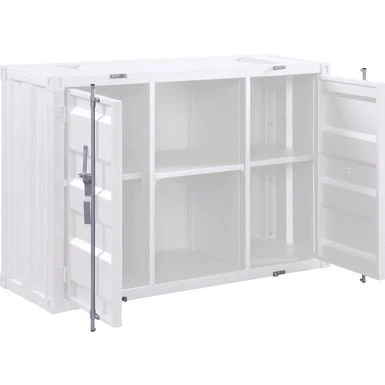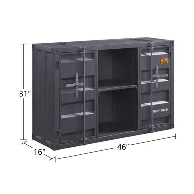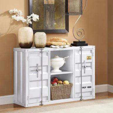 The impressive design elements mix contemporary and industrial themes into one impressive transitional look. The unique rectangular server features a pedestal base with two doors and a storage compartment. The impressive design elements mix contemporary and industrial themes into one impressive transitional look. The unique rectangular server features a pedestal base with two doors and a storage compartment.