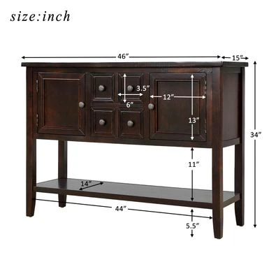- 46 inches long x 15 inches deep x 34 inches high