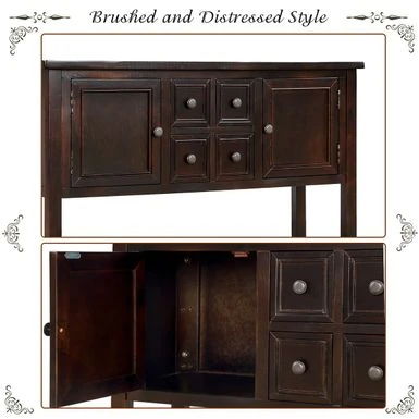 - Distressed brown finish
