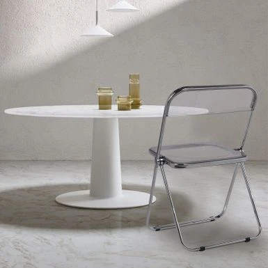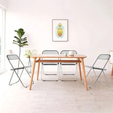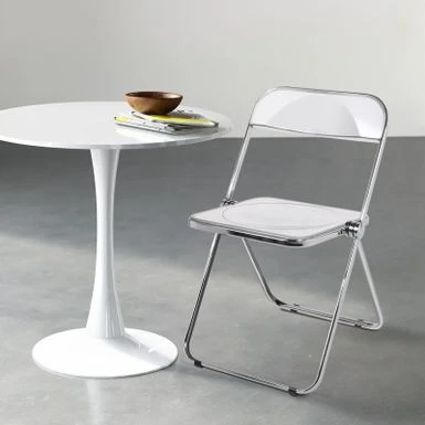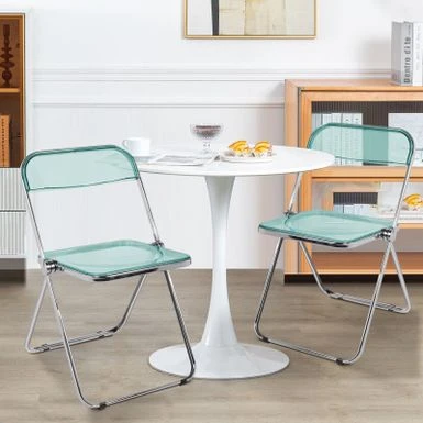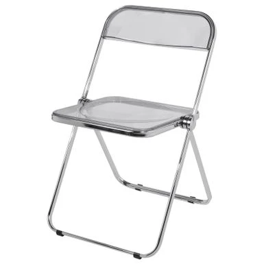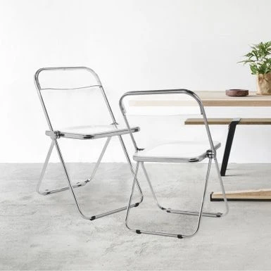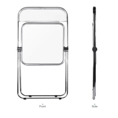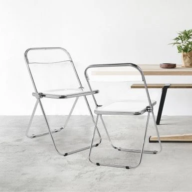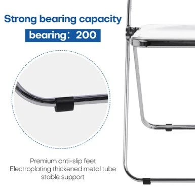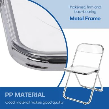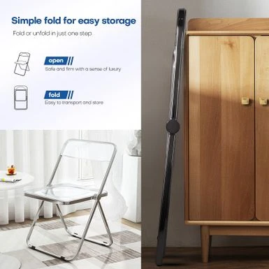 The folding chair features classic silhouette, transparent widen seat, reinforced metal construction and sliver chrome finish frame, adding a touch of stylish to your dining room, living room, kitchen or cafe. Ideal for reception, party or photography. Made of durable acrylic and heavy duty metal frame, wear-resistant and waterproof, it can support up to 200lbs.Â