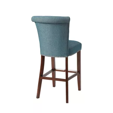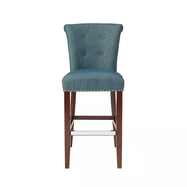 Elegant silver nailheads add an extra touch of dignified style to this roll back button tufted bar stool. Assembly required.