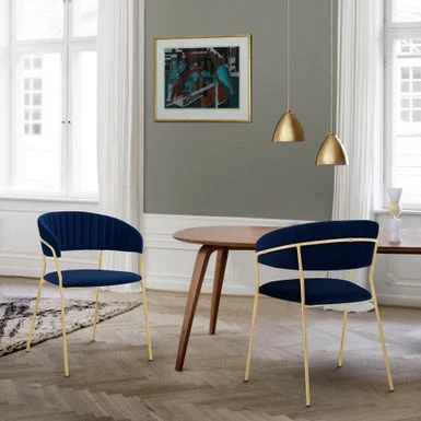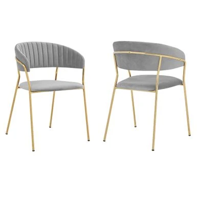 The Armen Living Nara Modern Velvet and Metal Set of 2 Dining Room Chairs are the best options for anyone looking to add refinement and elegance into their living space. The ultra-smooth velvet upholstery is flawlessly wrapped around the rounded seatback, while the upholstery on the seat covers the incredibly soft foam-padded cushion. The metal frame of the Nara is built with durability and sturdiness in mind, giving you years of enjoyment. The legs are tipped with rubber caps to prevent scratching or sliding on floors and help keep you home in pristine condition. The unique look of the Nara will make a statement in any room of your home and become the eye-catching works of art you are looking for. The Nara is available in your choice of Jewel Blue, Rose Pink, and Gray.