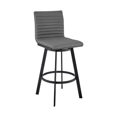Bring the Nikole Swivel Bar Stool from Armen Living into your beautiful home! It is the best choice to bring in another seating option and does so without compromising on comfortability. The wonderful faux leather and metal accents give the Nikole a look of refinement, making you proud to show it off in your home. The foam-padded seat and back cushion offers you the most comfort available to you! The Nikole also features a brushed wood veneer back and convenient metal footrest, for additional support and stability.