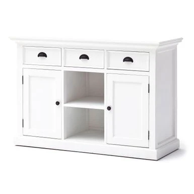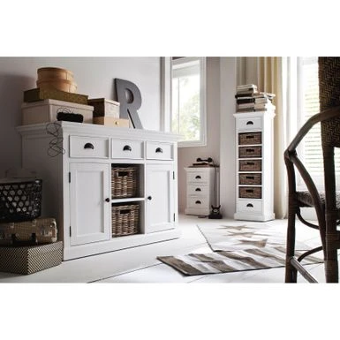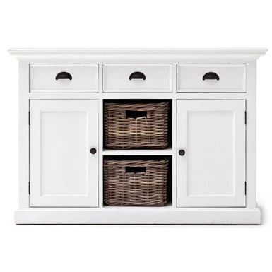 - Set includes: One (1) Buffet, Two (2) Doors,Two (2) Shelves, Three (3) Drawers, Two (2) removable baskets