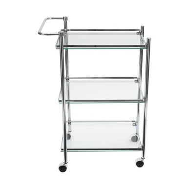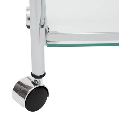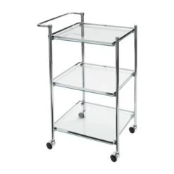 Style and convenience with the Organize It All Rolling Serving Cart. Designed with 3 tiers of shelves, a push handle, and 4 wheels, this is the ultimate cart for home entertainment. Style and convenience with the Organize It All Rolling Serving Cart. Designed with 3 tiers of shelves, a push handle, and 4 wheels, this is the ultimate cart for home entertainment. The tempered glass shelves are made to be long lasting and durable and the 4 wheels makes it easy to mobilize from one room to another when needed. Easily place your dinnerware, food, stemware, servingware or drinks all on one cart. The tempered glass shelves and chrome finish gives the cart a sleek look to fit in with any room in your home!