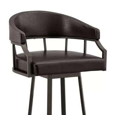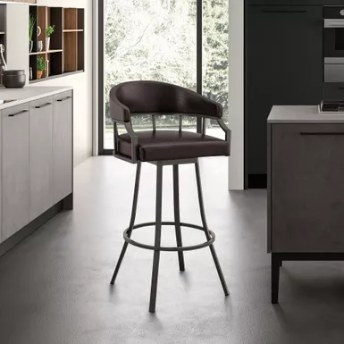 The Palmdale Swivel Modern Metal and Faux Leather Stool is a fabulous and functional furniture addition to any home! This beautiful stool is upholstered in butter soft faux leather in multiple color options. The frame of the Palmdale stool is constructed from metal that is sturdy enough to last for many years to come. Enjoy full mobility with the 360-degree swivel functionality that allows you to join in on the conversation from any part of your kitchen or bar area. The padded and upholstered back rest gives you comfort that only increases with its convenient metal ring footrest. Enjoy a luxurious style bar stool that is unique in style and practical in function.