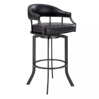 The Armen Living 26″ Pharaoh Swivel Bar Stool will add a touch of elegance to your home no matter the design theme. The soft faux leather upholstery allows easy clean up and swivels for optimal convenience.