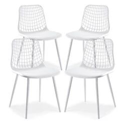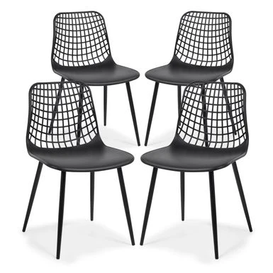 Add a touch of industrial style to your dining room with this set of four Marais Dining Chairs from Poly and Bark. The open-meshed backrest design gives these chairs a laid-back, casual feel, while the molded polypropylene seats offer ergonomic comfort for extended sitting. The chairs also feature powder-coated metal legs that are scratch-resistant and UV-resistant, making them perfect for indoor and outdoor use. With easy assembly and compact storage, this set of four chairs is a versatile addition to any home.