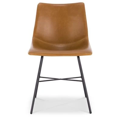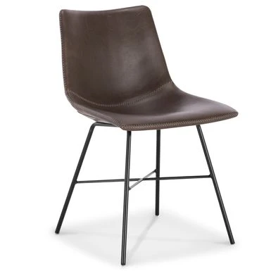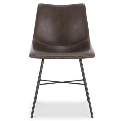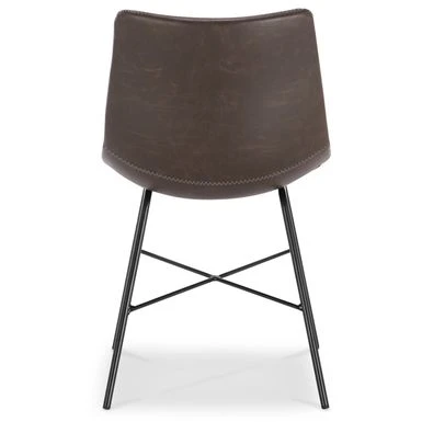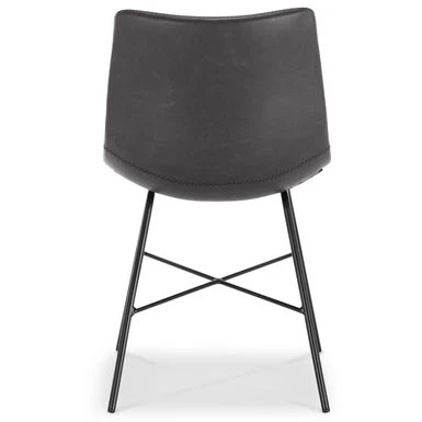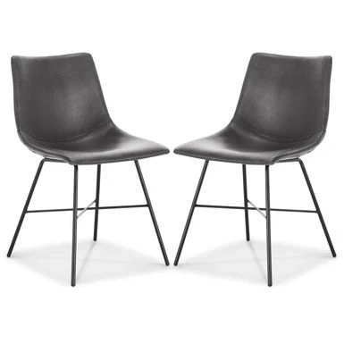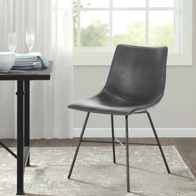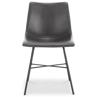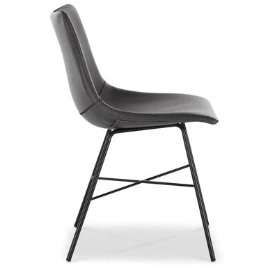 Subtle curves and modern lines merge, infusing this dining chair and your space with undeniable sophistication. The upholstered gray textured high durability leatherette complements any decor style and its gently scooped seat is outlined in eye-catching luxe reinforced saddle stitching detail. Stunningly sturdy, this dining chair features a welded steel base and steel legs in a matte black powder coating. Long-lasting and oh-so charming, it’s the perfect addition to a contemporary restaurant or your home dining area or breakfast nook or modern restaurant.
