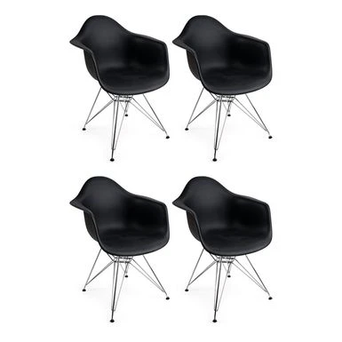 Add a touch of mid-century style to your dining area with this set of four Porch & Den Old Weir dining chairs. The ergonomically curved plastic seat adapts to your body for comfortable seating, while the metal Eiffel base provides sturdy support and a sleek finishing touch.