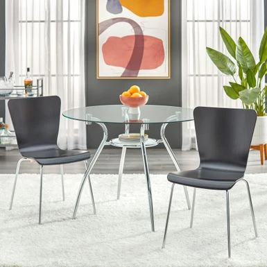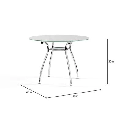 Elevate your dining space with this stunning Porch & Den St. Paul Tempered Glass Chrome Round Dining Table. Ideal for small homes and apartments, this modern styled table boasts a lower shelf design and an under-tray for added functionality and appeal. With a sturdy chrome and tempered glass construction, it is sure to last for years to come. Measuring 29.5 inches high x 39.5 inches wide x 39.5 inches deep, it can accommodate up to 4 people comfortably.