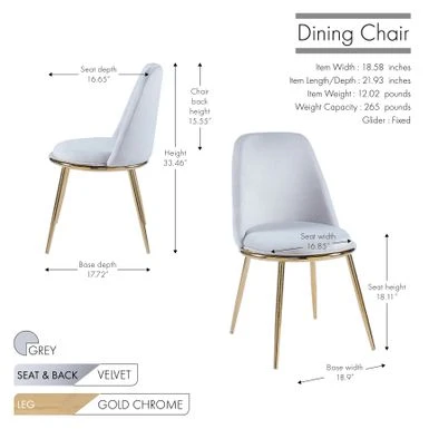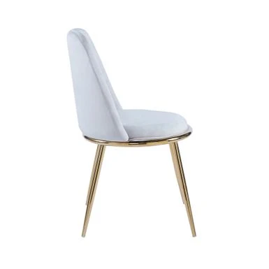 Dani dining chair makes a bold statement with its slender, gilded legs. Definitely the look that complements its luxurious velvet upholstery.