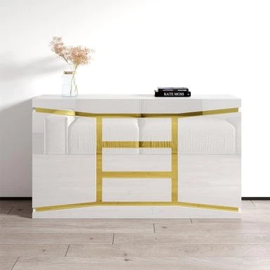 Prestige 55″ Sideboard- Modern Sideboard / Buffet / Credenza High gloss fronts with matte body Manufactured in and imported from the European Union Modern and unique contemporary design Perfect for those in need of living room storage space Flat packed