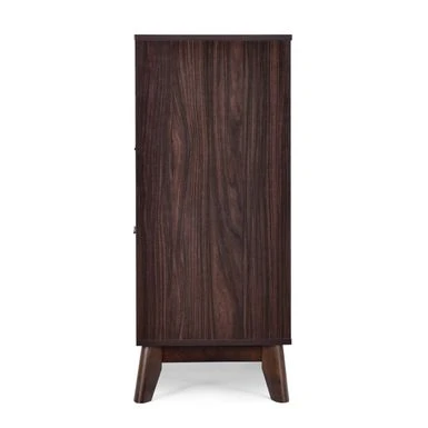 Looking for an accessory to clear up the clutter in your home? Get the job done with an accessory of stylish character and incredible function. Featuring a stunning mid-century modern design, our two-drawer cabinet brings a sophisticated touch to your home. This cabinet offers a smooth wood finish, delightfully splayed legs, and plenty of storage space, giving you ample room and style to organize your items. Blending seamlessly with your existing decor, this cabinet will bring out the best of your interior space.