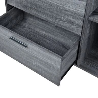 STORAGE SPACE: This accessory offers cubby shelves and two drawers for storing and organizing your items. The drawers are finished with bar handles for easy access to your items.