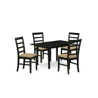 East West Furniture 5-Piece Rectangular Dining Table Set 4 Wood Dining Chair with Ladder Back and a Linen Fabric Seat and Butterfly Leaf Dining Room Table with Rectangular Top and 4 Legs- Black Finish
