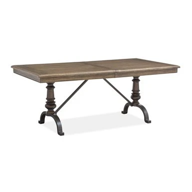 Elevate your dining room with the timeless design of the Roxbury Manor Rectangular Dining Table. The warm wood finish and shapely silhouette, accented with Antique Bronze metal details, create a perfect balance of traditional and deconstructed-inspired elements. Whether hosting casual dinners or formal gatherings, this dining table will be the centerpiece of your dining room.