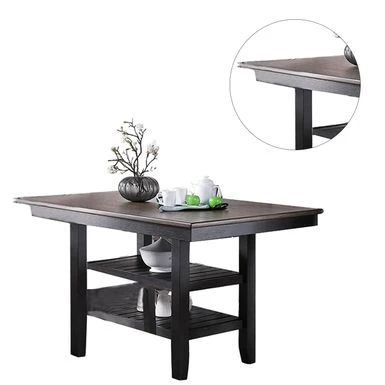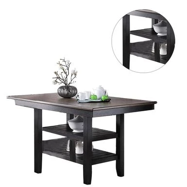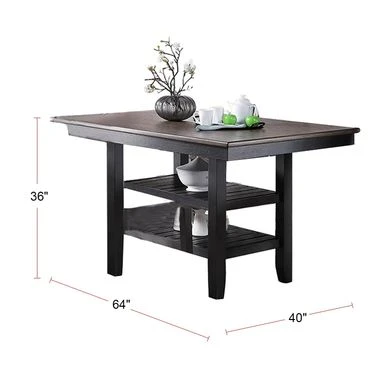 Rubberwood Dining Table With Shelf In Dark Coffee – Counter Height