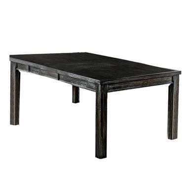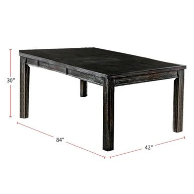 This rectangular dining table will be the focal point of any home with its eye-catching antique black finish and elegant structure. The table with a convenient 18-inch leaf offers the option of hosting a large dinner or extra space, and it is quite sturdy and doesn’t wobble at all. Easy to clean, simply use water and a non-abrasive cloth to wipe down when needed.