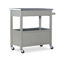 - Pine Wood, Stainless Steel, Metal/Rubber Caster