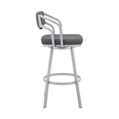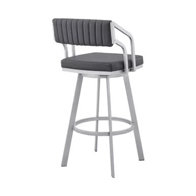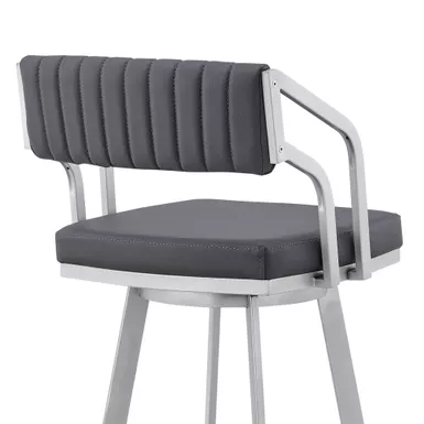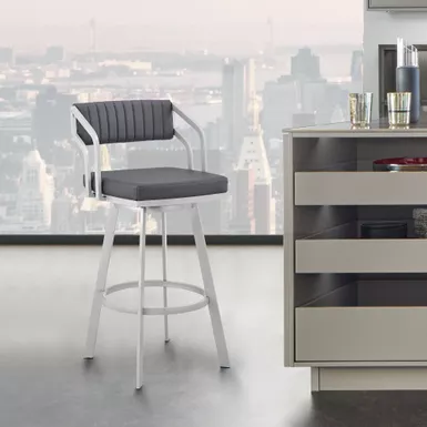 Add a modern furniture piece to your home with the Scranton Swivel Modern Metal and Faux Leather Stool. The Scranton is a unique design that will be sure to start conversations at all your gatherings. Pull the Scranton up to your kitchen island, counter, peninsula, bar, or pub table with ease due to the unique low arm design that allows you to sit as closely to your desired surface as needed. The Scranton’s modern style silhouette is perfectly complemented by its channel style stitching on the back piece. The back of the Scranton’s open-lower back design allows for cool breathable seating. Enjoy full mobility with the 360-degree swivel function that keeps you fully engaged with guests on all sides of the room. The Scranton Swivel Modern Metal and Faux Leather Stool can support up to 250lbs per stool.