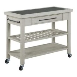 Cambridge Natural Wood Top Portable Kitchen Island In Classic Cherry Finish – N/A – Portable – Brown