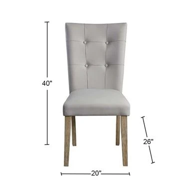This dining chair set is designed in a transitional style to complement any home. The gray upholstery and oak finish complement each other beautifully. The PU padded seats are just as comfortable as they are stylish. This dining chair set is designed in a transitional style to complement any home. The gray upholstery and oak finish complement each other beautifully. The PU padded seats are just as comfortable as they are stylish. Luxe, texture-rich material with button tufted details achieve a lavish look and feel, making the chair a great complement to many rooms.