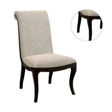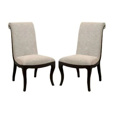 Unique appearance and design make this chair with espresso-tone legs maintain its eye-catching appeal. The seats and back are made of padded linen-like fabric providing comfort, while the back is made of simple lines and shapes for a perfect look, sold in a convenient set of two.
