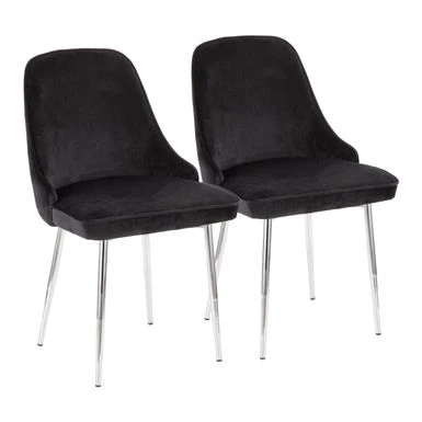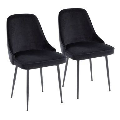 Add a touch of sophistication to your dining area with the Silver Orchid Naldi Contemporary-Glam Velvet Dining Chair set. Boasting chic velvet upholstery, elegantly curved silhouette, and tapered metal legs, this set of two chairs offers both style and comfort. Choose from various color and leg options to perfectly complement your decor.