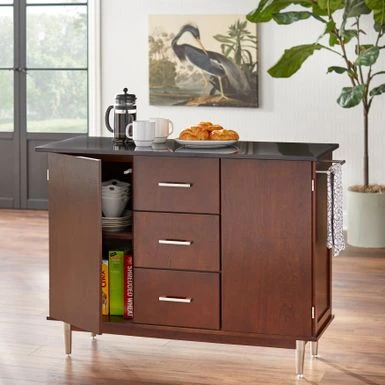 - Black top, Walnut finished base and Brushed Silver finished pulls and legs