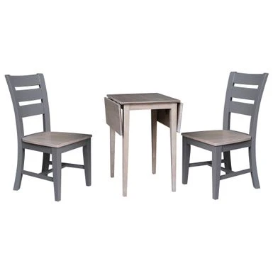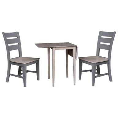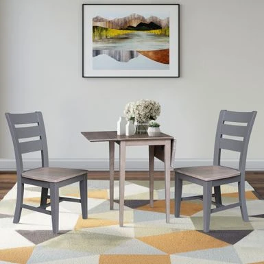 International Concepts home furniture is a beautiful collection of high quality, wood furniture with a traditional and elegant look. Featuring pieces you will be proud of for years to come and will easily complement any decor. All pieces are manufactured from solid Parawood which is more commonly referred to as Rubberwood. Parawood is eco-friendly in terms of being a fantastic renewable resource. As Parawood is considered to be a hardwood, it is actually a truly durable and strong wood. Includes drop leaf dining table and 2 dining chairs Made of solid hardwood with a butcher block tabletop designΒ