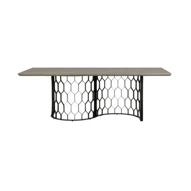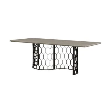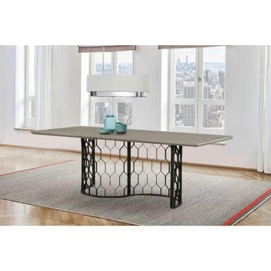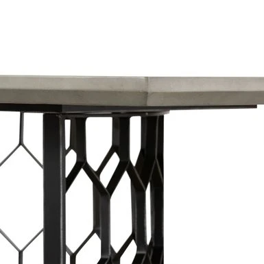 The Solange Concrete and Black Metal Rectangular Dining Table by Armen Living is a stunning piece of furniture that blends modern design with durability. The sleek grey concrete top is easy to clean and features a smooth surface, ensuring that you can enjoy your meals without any worries. The black metal legs are designed with a hex-grate pattern that adds texture and contrast to the table, giving your dining room a contemporary look. With enough space to seat up to 8 people, this table is perfect for hosting dinners with family and friends.
