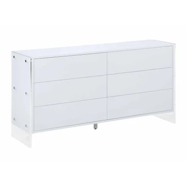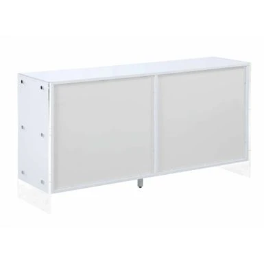 Host in style and comfort with this one-of-a-kind buffet made of a beautiful combination of wood and solid acrylic. The 0.7 thick solid acrylic side panels give sturdy support, while the glossy white finish makes it match well with many settings. The cabinet features six push-to-open drawers. The 61 long top surface can be used to display decorative pieces in the room. This contemporary buffet is the perfect furniture piece to add to your room if you are looking for a cabinet that offer additional storage space in your room.