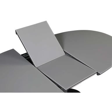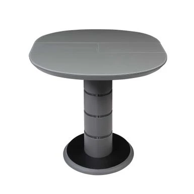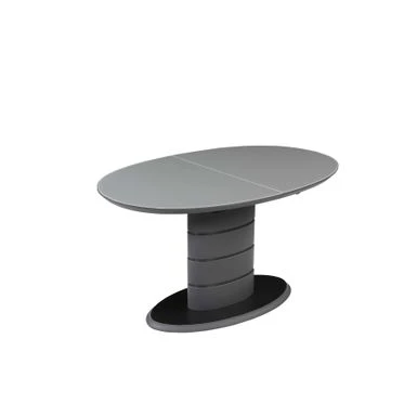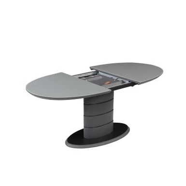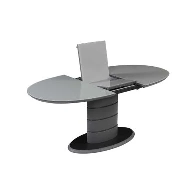 The Kenya dining table will add a contemporary flair to your home. This table features a gray gloss finish that can extend from 55″ to 71″ with a one-hand mechanism. The art deco stripe pedestal base and floorplate is finished in black.