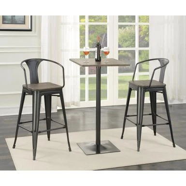- Set includes: One (1) bar table