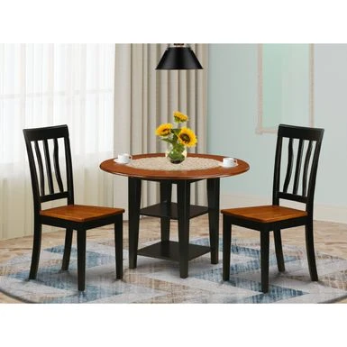 Sudbury Dining Set – A Round Kitchen Table And Dinette Chairs – Black And Cherry Finish (Pieces & Seat Type Options) – SUAN5-BCH-LC