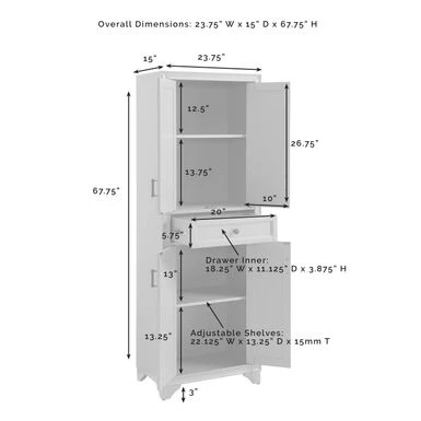 Tara Pantry – 23.75″W X 15″D X 67.75″H – White
