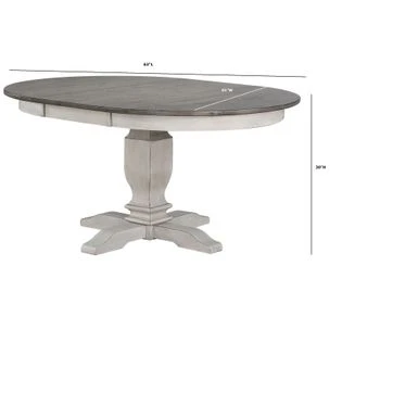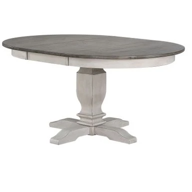 - Round single pedestal table with a gear-driven 18-inch takeout leaf