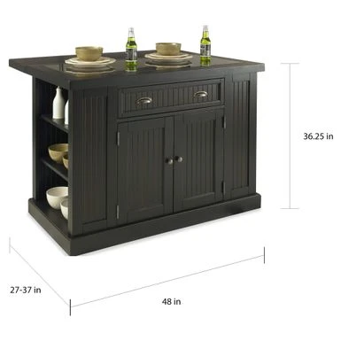 - Island: 48 inches wide x 27 – 37 inches deep x 36.25 inches tall