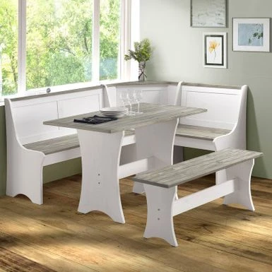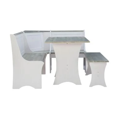 Transform any corner of your kitchen into an intimate space for meals and conversations with The Gray Barn Hillcrest 3-Piece Storage Nook. With seating for five, this charming nook offers extra storage, space, and a touch of country manor elegance to your existing home décor. Choose between the classic White or Antique Black finishes to make a statement.