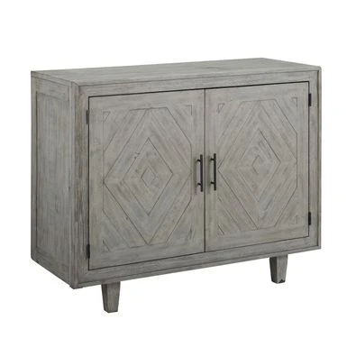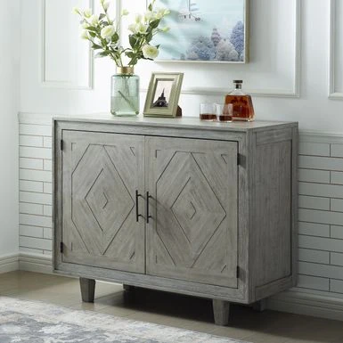 The Winlock sideboard has a way of bringing rustic elegance together with refined, yet casual design. The beautiful, neutral grey finish is highlighted by an elegant, raised diamond wood inlay on the two cabinet doors. One convenient fixed shelf inside the cabinet, provides storage while the top offers a space for displaying decorative items or can be used for additional serving space for special occasions.