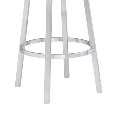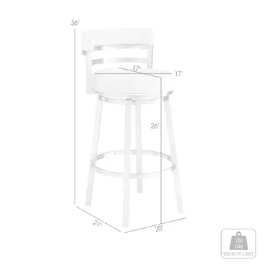 Style and function come together in harmony with the Titana 26″ Counter Swivel White Faux Leather and Brushed Stainless Steel Bar Stool from Armen Living. Its armless design makes this the perfect addition to any home or apartment as it allows you to pull the kitchen stool as close as needed to your kitchen island, peninsula counter, or home bar. The Titana frees you of any visual constriction with the 360-degree swivel motion, helping to keep you engaged with your friends at family at gatherings. The upholstered low back is rounded, providing the user with exceptional ergonomic support. The Titana’s padded bar seat and back are constructed from high-density foam and wrapped in soft faux leather upholstery that will keep you comfortably seated for hours on end. The strong metal frame that’s further accented by the inclusion of a round footrest. The Titana’s legs are tipped with floor protectors, assuring that the bar stool will not slip on or scratch hardwood or tile floors, ensuring a durable bar stool that will last for many years to come.