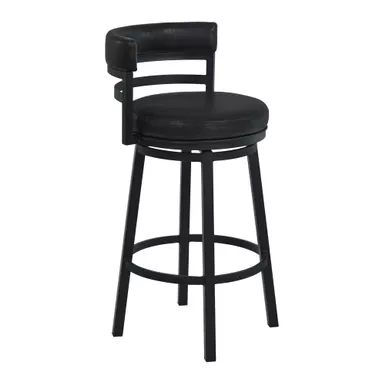 The look of the Mediterranean is at your fingertips when you incorporate this stylish transitional barstool into the comfort of your home. Beautifully complimenting any home bar, kitchen, dining or game room, the Titana 30″ Bar Barstool was created in a lovely metal Black finish complimented by Black Ford Faux Leather upholstery, providing an exceptional level of style and comfort all at once. The Titana barstool also boasts the ability to swivel, so that you may easily adjust yourself to whatever seating arrangement you may find yourself, and the leatherette seat makes it comfortable to stay there as long as you’d like.