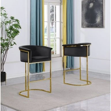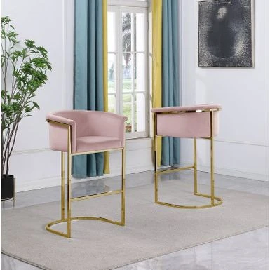 Introduce elegance and comfort to your space with this Upholstered Counter Height Chair. Its simple yet sophisticated design makes it a perfect addition to any room. Upholstered in velvet fabric and supported by a durable gold or silver iron frame, this chair is both stylish and sturdy. Available in multiple colors, this single-piece chair can be easily paired with any decor style. Elevate the look of your home with this versatile counter height chair.